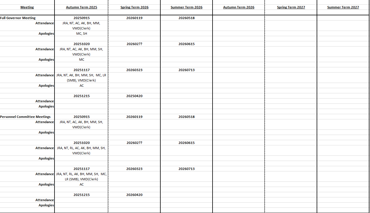 Governor Attendance 2023-25